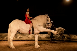 Le spectacle mêle voltige, dressage de haute école, acrobatie, jonglage, pyrotechnie, jeu d’acteurs, humour, suspens et poésie.